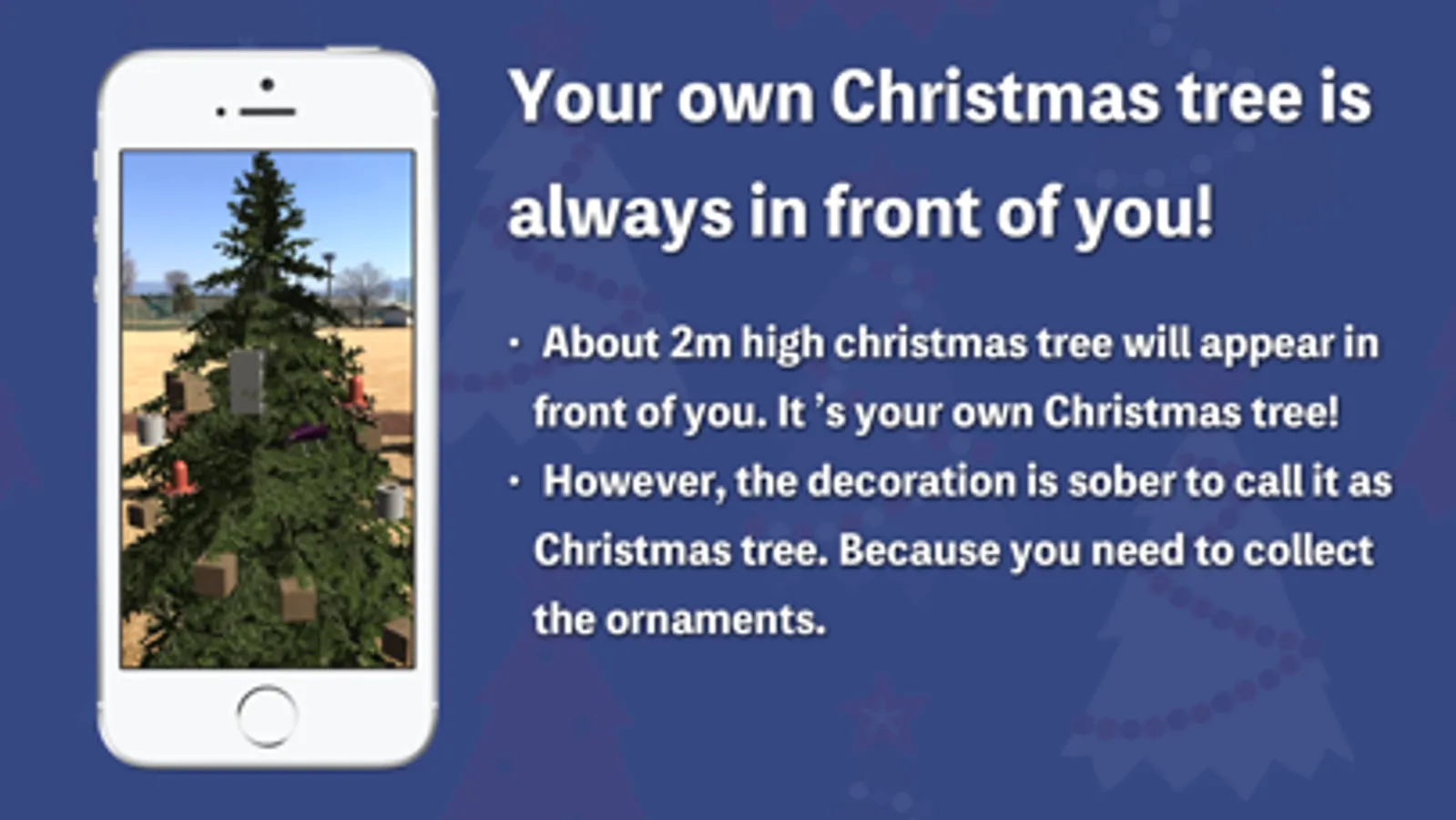 Get your own christmas tree! By using this app, you can quickly set up a Christmas tree about 2m high.