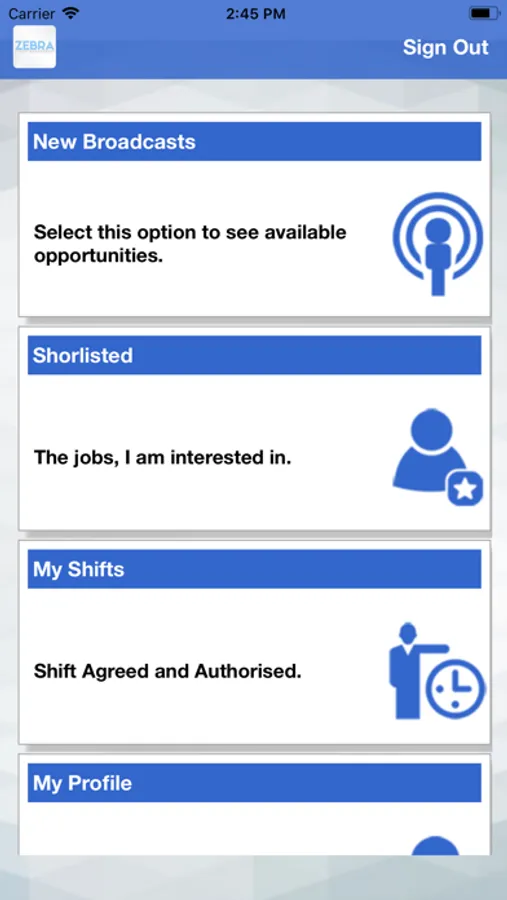 The Zebra Connect Agency App enables employers to broadcast and manage their temporary job requirements. Registered qualifying users can get notifications for new opportunities, apply for jobs and manage the shifts for which they are hired.