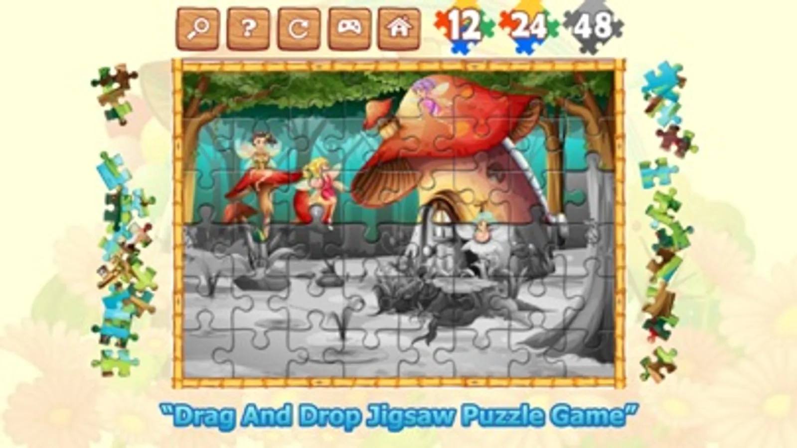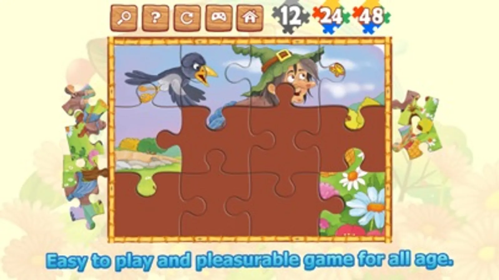 The three levels of Jigsaw Game, you can choose between Easy, Normal and Hard for 12 very cute Fairly Tale Cartoon images. All day fun!!!