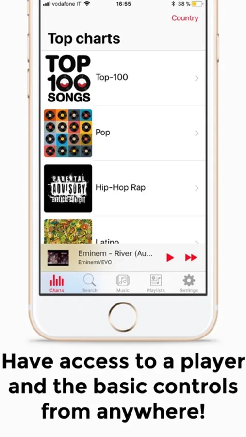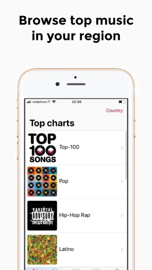 +You can browse the top charts of the different types of music in exact country.