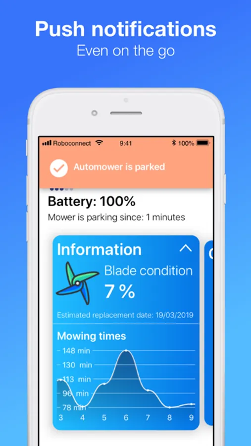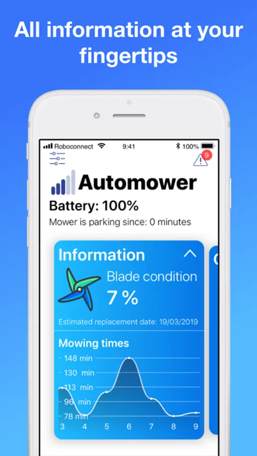 - Detailed information about the status of your mower