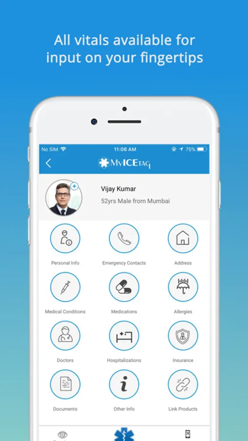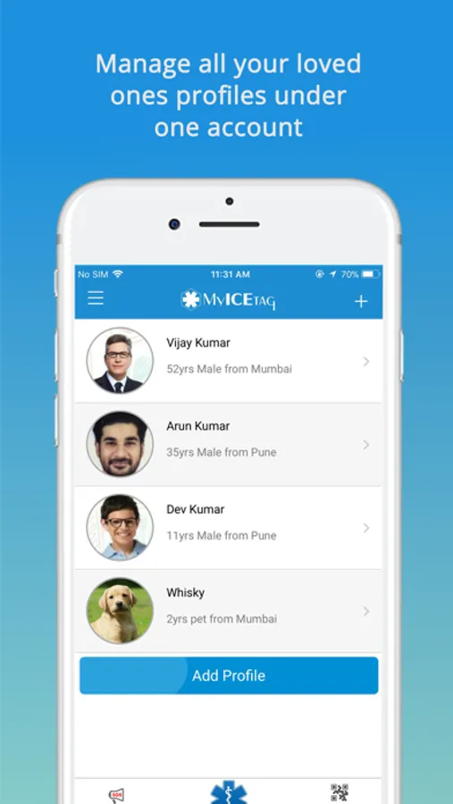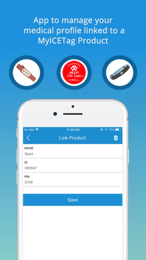 ## The app also allows you to manage your MyICETag Profiles and link with your MyICETag bracelets, sticker, or other MyICETag products to provide emergency info when you don't have your phone with you.
