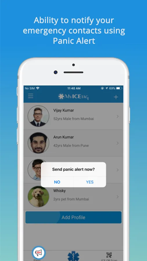 ## Ability to raise a Panic alarm from the app itself In case of An Emergency. Panic alarm will notify the emergency contacts using sms/phone/email.