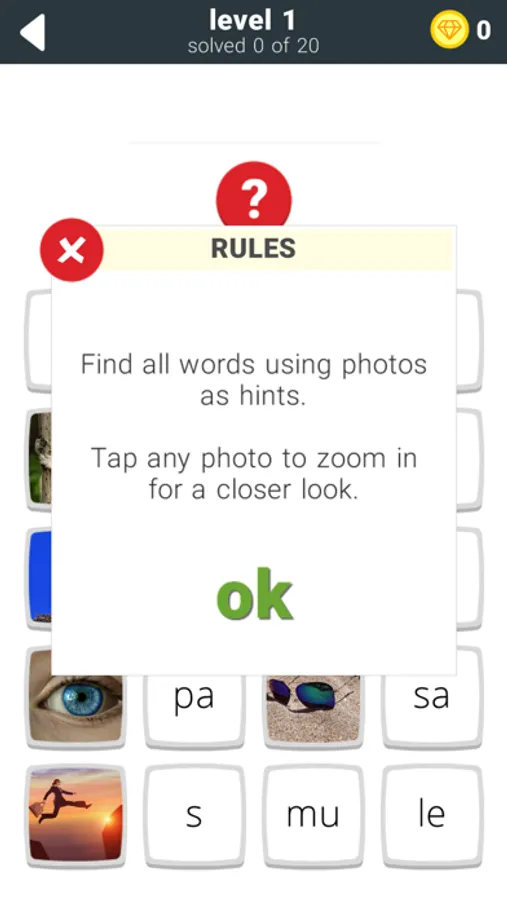 Each picture means something: an emotion, a verb, an adjective or a noun. It is up to you to find the answer! Tap on the picture to zoom in and try to find the answer! Some clues are simple and some are more difficult. If you like word games or puzzle game, this word game is for you!