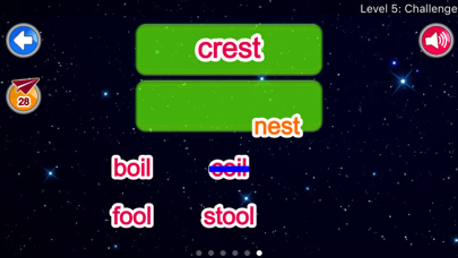 Mavi Learning Rhymes is a word family and rhyming word game to help your child learn to recognize words by letter patterns. Learning groups of words that have similar letter patterns (such as bat, fat, mat, that or bake, cake, lake, take, etc.) is an efficient strategy to help your children improve their reading skills and decode new words from letter patterns. All of the app's 1,100 words are categorized into 332 groups of words (such as an, at, eath, ide, ard, irt, own, ood, etc.). Your child can also learn 41 beginning rhymes and 155 end rhymes. In the word family game, your child will learn beginning sounds and rhymes of the words in the same or different family. They have to find the missing beginning sound or rhyme sound in the word and then change some parts of the word to make the new one. Your child will earn the paper plane in each correct word, so that they can throw them to pop the balloons in the flight throwing game. Try to make correct words and collect the paper plane as many as you can! In the rhyming word game, your child will have to find words that have the same rhyme sound to collect the paper plane too. This game will help your children remember words in groups and improve their reading and writing skills in a fun and interactive environment.