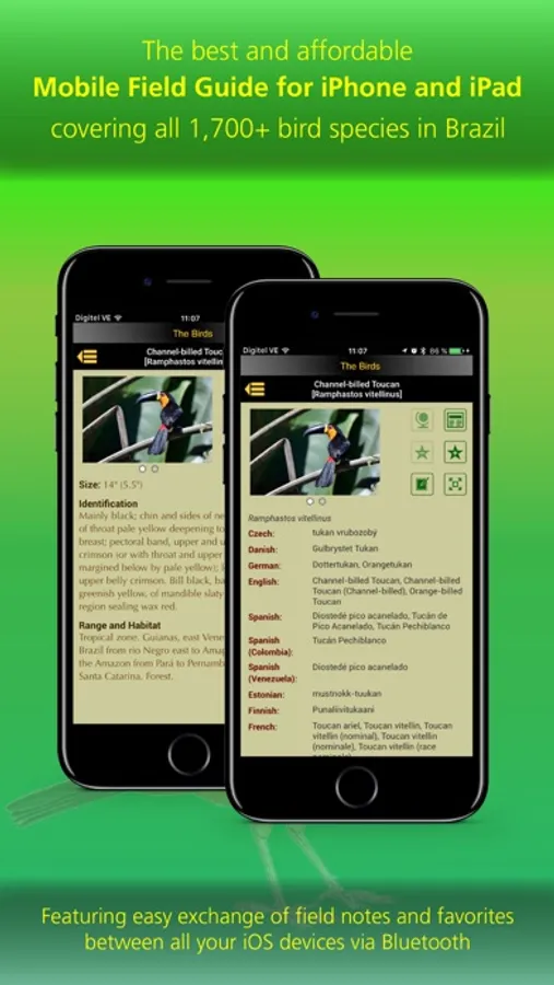 As with The Birds of South America, which contains more than 3,000 birds found on the entire continent, also The Birds of Brazil runs on any iOS device and can exchange Field Notes and Favorites list between identical app versions on two or more devices via Bluetooth.