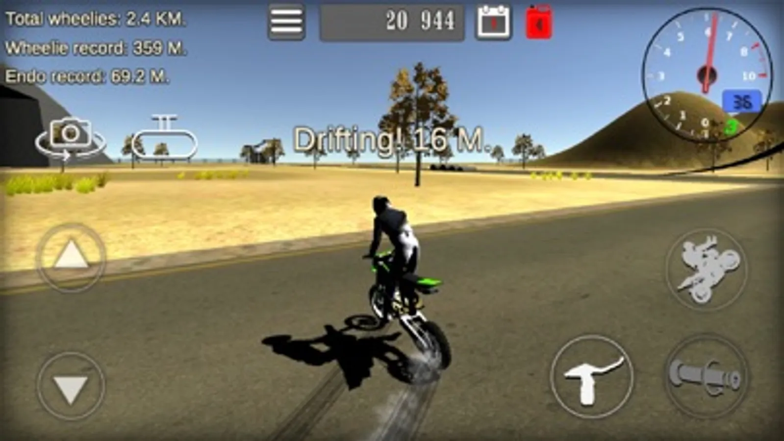 HOW TO PLAY: Tilt your phone to steer your motorcycle to left or right. Meanwhile, you can perform drift, wheelie, and stunts with the buttons. For example, you can use your thumb to tap forward and press throttle button to activate drifting mode.