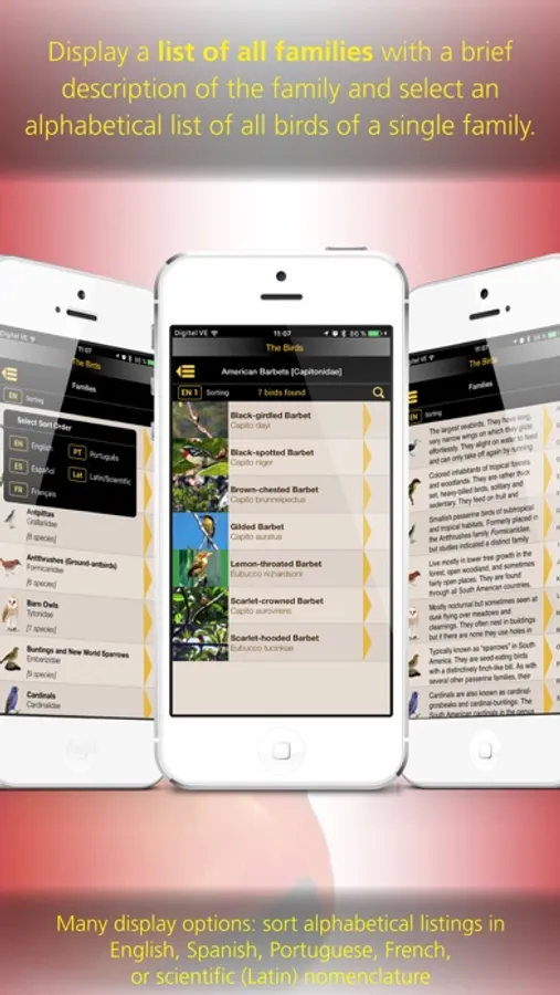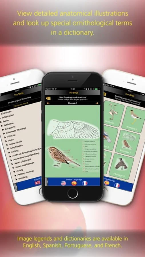 The current app version contains the descriptions and images of 1,703 bird species found in Peru. Moreover, an ornithological dictionary (English, French, Spanish, Portuguese) and detailed illustrations and drawings of bird anatomy are included.