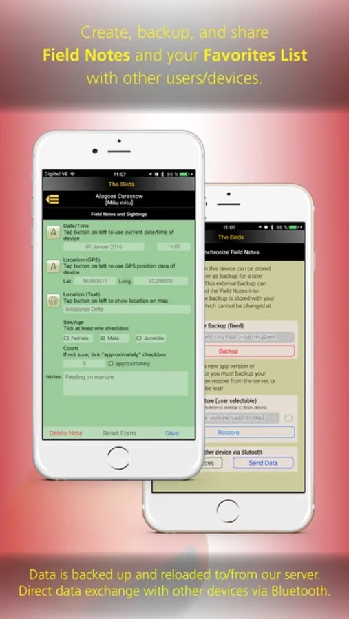 Apart from using the optional backup and restore functions for Field Notes and Favorites, the app runs completely offline and there is no need for an internet connection during usage in the field.