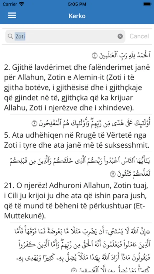 mund te zgjedh perkthime te ndryshme te kuranit si