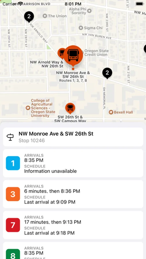 Beavus displays real-time data for each bus stop in Corvallis, Oregon. This including bus routes & stops, arrival times and service alerts.