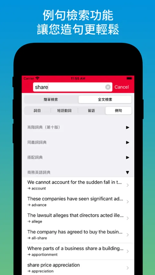 ▪ Integrated search - find words, phrases and examples in multiple dictionaries