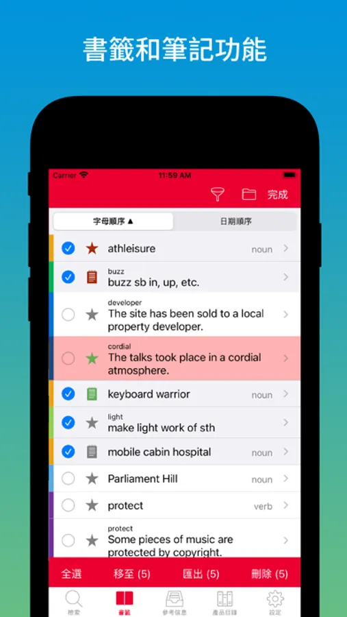 ▪ Add bookmarks and notes, set Learning Status, export your own word lists and notes