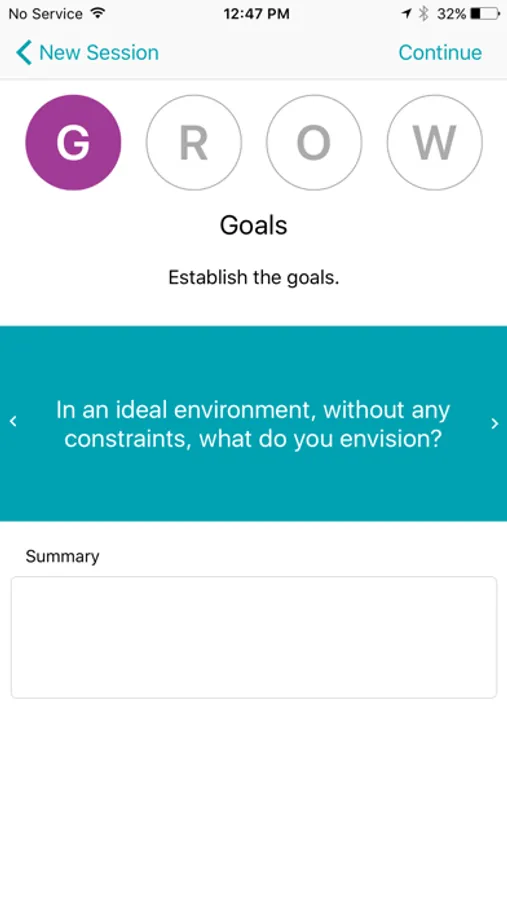 As a leader, one of your most important roles is to coach people to do their best. Leadership. Everywhere provides and easy to use way to set goals, make better decisions, solve problems, learn new skills, and progress careers. As a coach, this application guides you through the proven techniques of the GROW coaching model. GROW stands for Goals, Reality, Options and Will.
