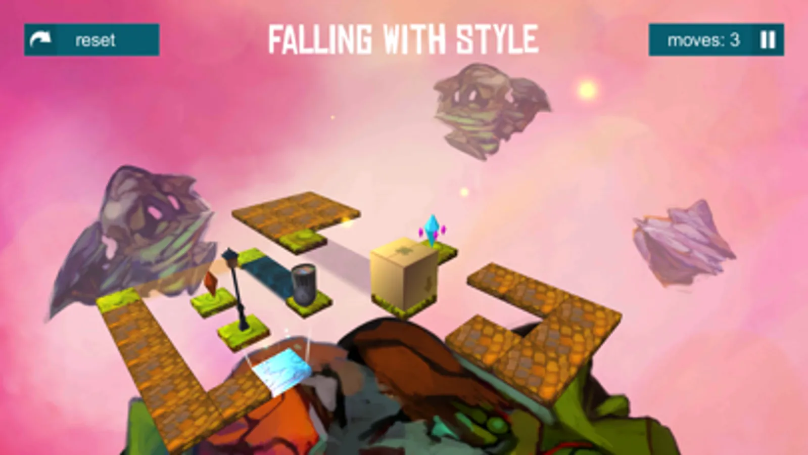 This is a simple-yet-challenging and magical 3d puzzle game. Our main character here is a carton or a cardboard box. This cardboard box stranded on a series of puzzle-shaped platforms which floating high above the earth. What you need to do is find the way to the reach the end point: a shiny blue tile. It is seems not so easy! You need to be carefull about water drops pushing, use different scrolling ways for different tiles. And do not forget to shoot out glowing purple magic stuff at crystal switches whilst to swith on some secret tiles. Make sure do not drop off from the platform, otherwise you were dead. Furthermore you could try to use steps as less as possible, manage to get full star rating. So let us play it.