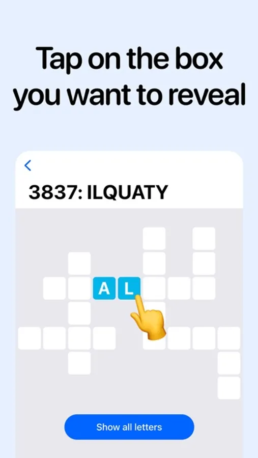 With our intuitive interface, getting the hints you need is as simple as a tap. Stuck on a level? Tap on a block to reveal a letter, or use our "Show all letters" button to display all answers at once.