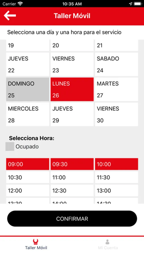 - You will find an agenda in which you will be able to see the available spaces and when you click on it you will reserve the exact time to receive the service.