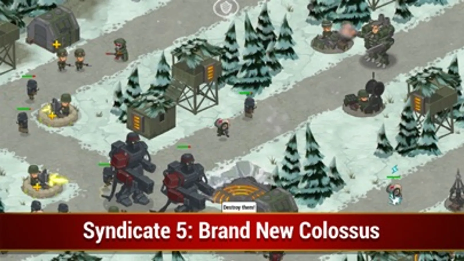 The events of Syndicate 5: Brand New Colossus takes places in an alternate reality following World War Two, in winter of 1967, with an army at your disposal, along with a powerful robot, which you can improve.
