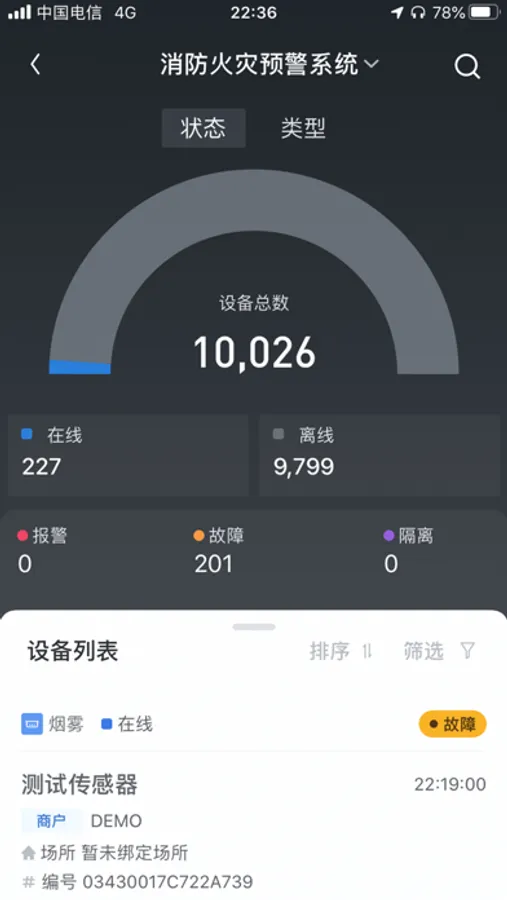 User can use the App show the data of sensor of Sensoro, and deploy the sensor to monitor smoke, temperature .etc.