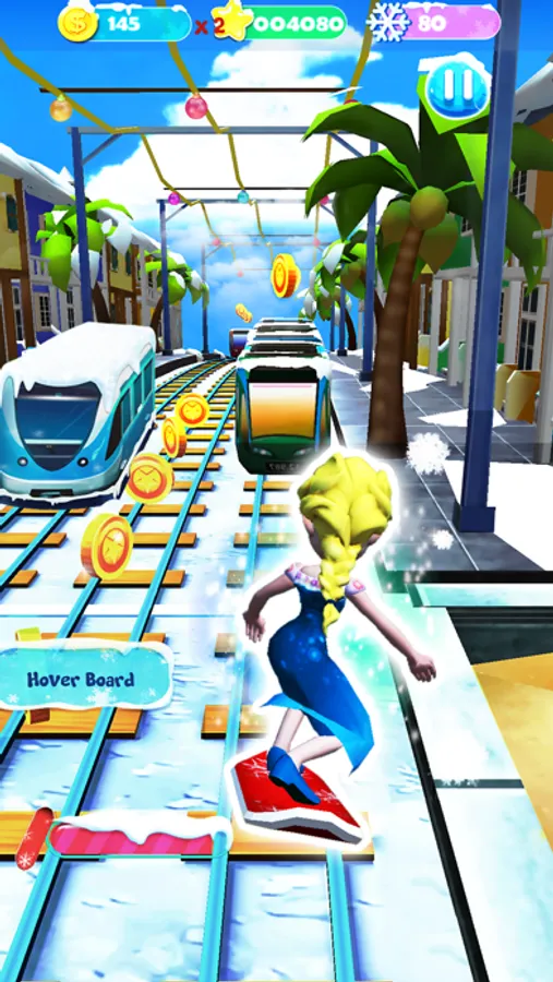 Run along the ice traffic subway and enjoy surfers under snowflakes. Let's become the most speedy frozen princess in the kingdom.