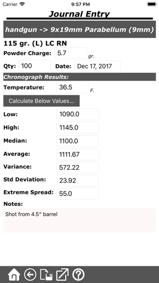 Additionally, the reloading journal allows you to keep track of every round that your reload as well how well the load performed by providing automatic calculations from chronograph data.