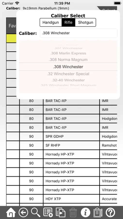 The reloading recipe viewer/tracker/journal is used to get load data (or recipes) for hundreds of different calibers. You can also add custom loads, as well as track how well each round performed by rating the accuracy and power of the load.