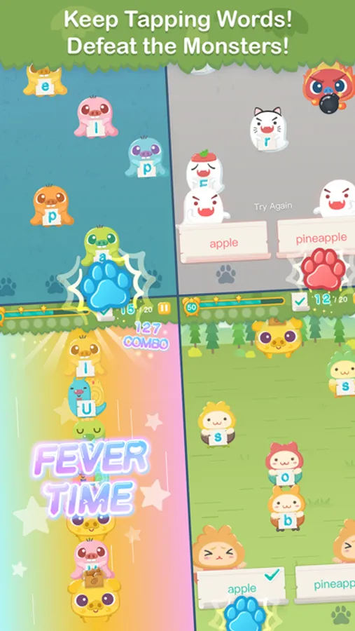 Tap on the vocabulary cards real fast, and pair up with the correct spelling.