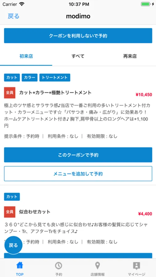 お得なクーポンが配信されます。ネット予約時にクーポン利用での予約も可能なので来店時もスムーズに施術頂けます。
