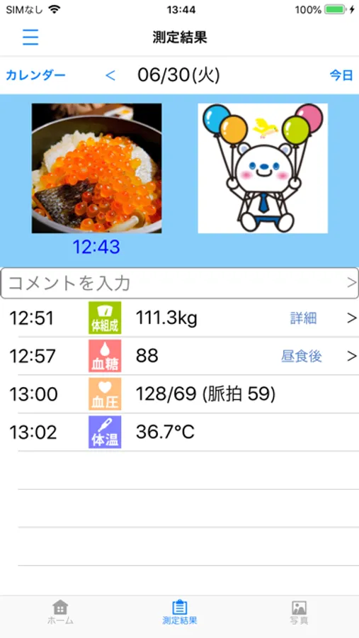 By receiving the values measured by various measuring instruments with this app, you can manage the daily measurement results in an easy-to-understand manner.