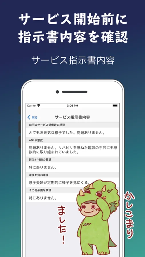 ・「トリケアトプス介護支援経過記録」は介護ソフト「トリケアトプス」と連携するアプリです。本アプリ単体ではご利用いただけません。