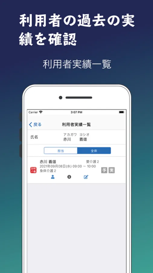 介護ソフト「トリケアトプス」のスタッフスケジュール、スタッフ実績と連動して作業実績の報告ができるアプリです。