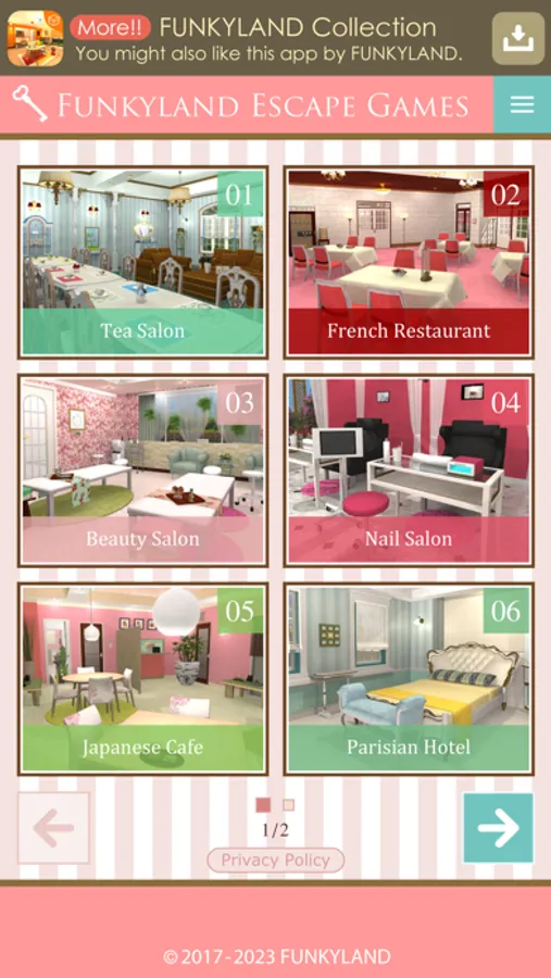 This app can play 10 escape games of FUNKYLAND.