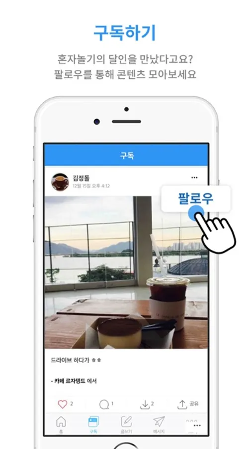 - 팔로우 기능을 통해 관심가는 혼족의 콘텐츠를 모아보세요
