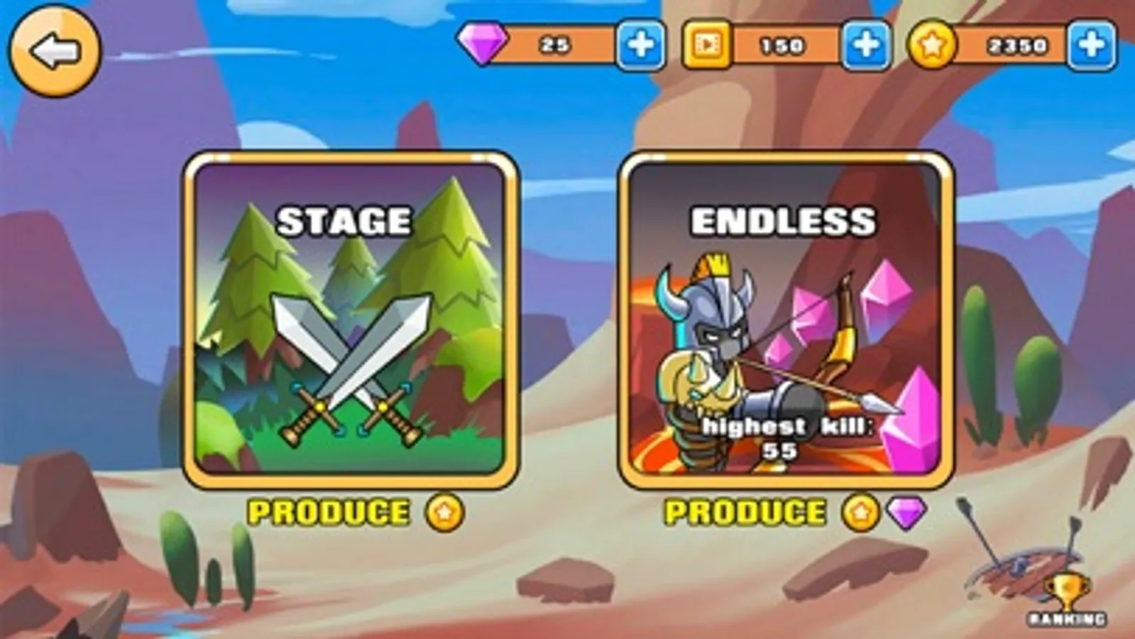 You only have one bow at the start of the game. All equipments are earn by playing. You need to set up your teams and fight against your enemy in the endless way to death.