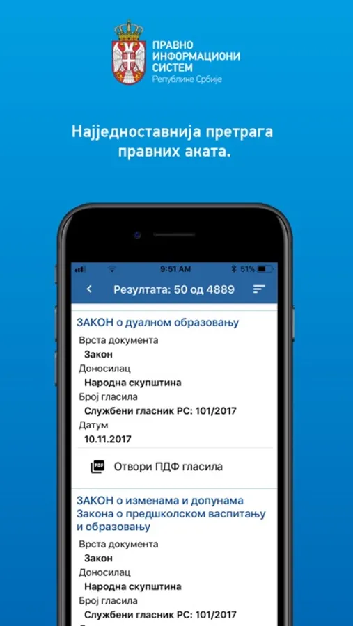 PIS RS – zakoni i propisi iOS aplikacija omogućava vam da na brz i jednostavan način BESPLATNO pristupite svim važećim zakonima i propisima ovlašćenog izdavača, u izvornom, potpunom i tačnom obliku, na jednom mestu.