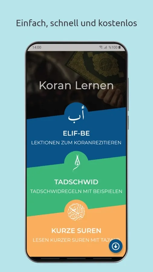 Folgende Lektionen und kurze Suren sind in dieser App vorhanden: