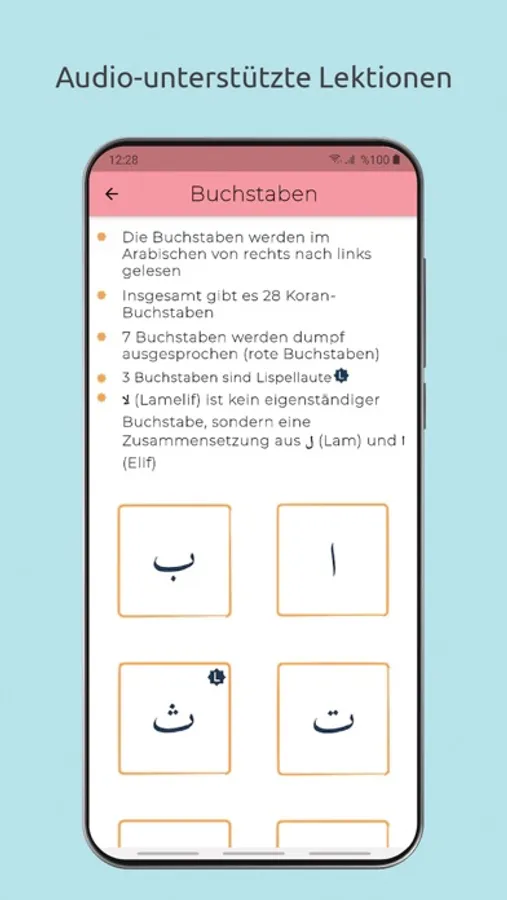 Diese App wurde von Ömer Aslan erstellt. Er lehrt an der Goethe-Universität "Koranrezitation" und hat das Buch "Elif-Be" veröffentlicht. Zu dem Buch wurde diese App erstellt. Diese App beinhaltet alle Lektionen aus dem Buch und wird durch Audiodateiein unterstützt. Beim Erwerb dieses Buches erhalten Sie kostenlos die App "KoranLernen".