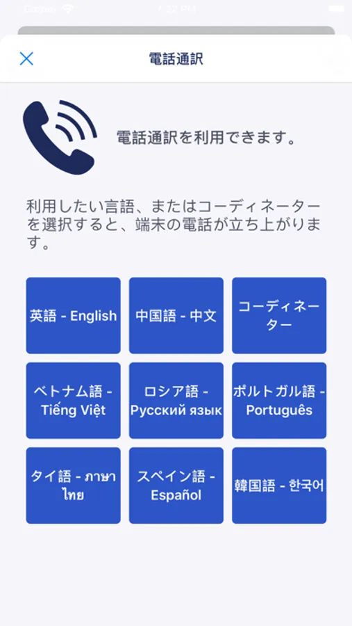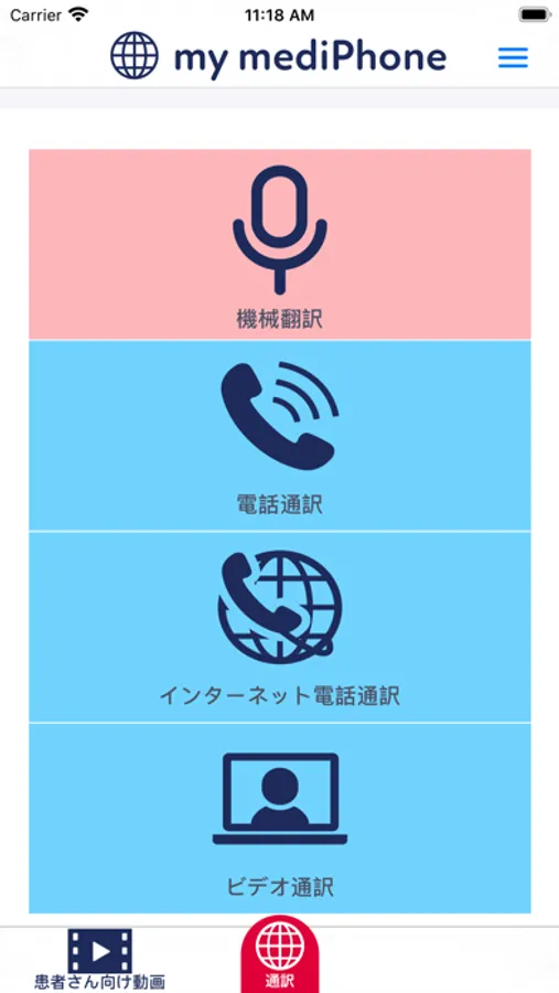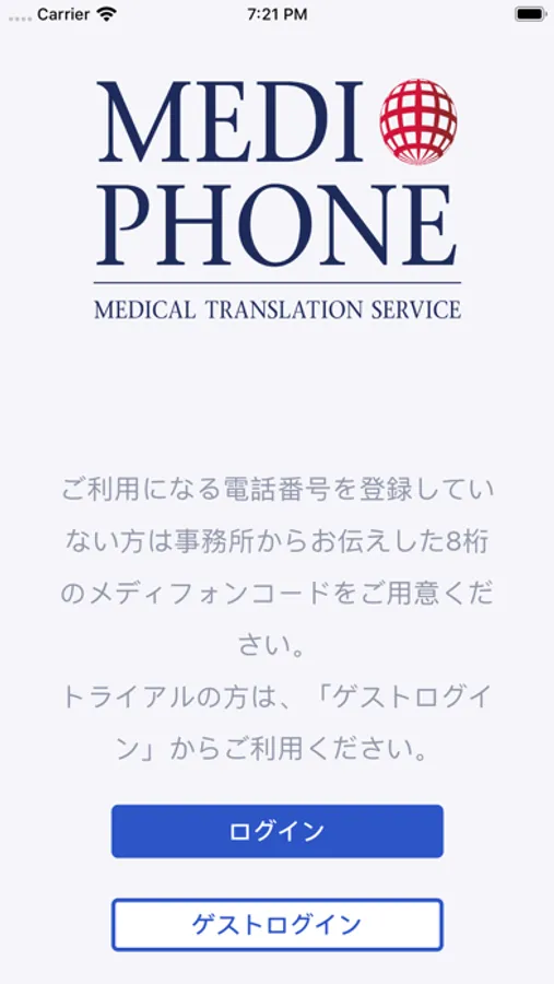 本アプリはメディフォンの医療通訳をより便利にご利用いただき、医療機関における外国人患者さんの受入れを円滑にするお手伝いをするためのものです。