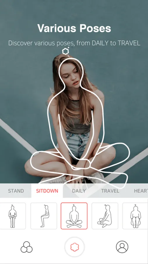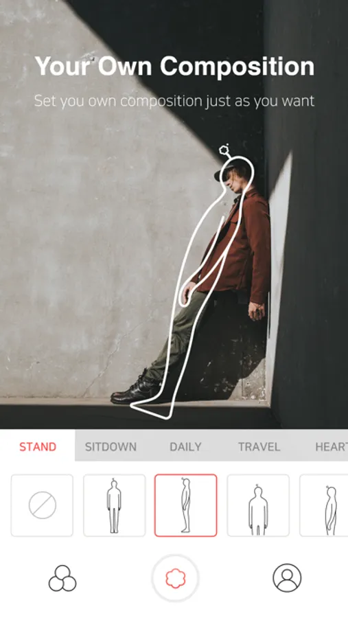In Normal Mode, you can visualize your own composition on the camera screen. Choose a pose, size it and move it to the position you want. Then, hand it to anyone and ask for a photo. Anyone could take the best photo as you desired.