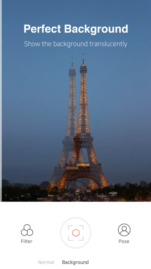 If you want to show your background, go into the Background Mode. Take a background picture that you want to take with, which will appear translucent on the screen. Then, hand it to anyone to overlap the screen and the pre-set background.