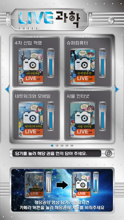 2. 앱에서 각 권의 콘텐츠를 담은 뒤 버튼을 눌러서 카메라를 실행합니다.