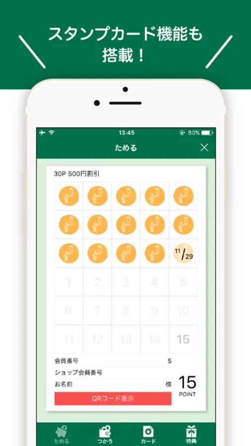 これまで紙で用意されていたスタンプカードの機能があります。