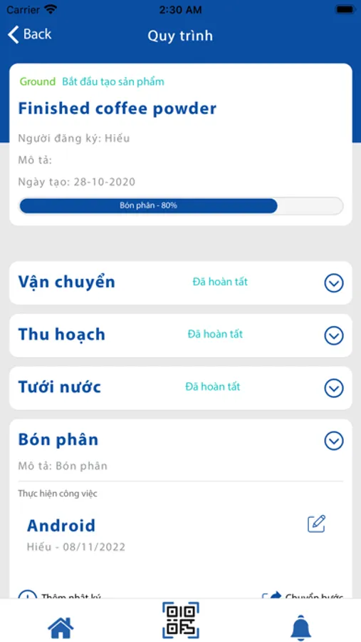 Người bán có thể quản lý nhiều trang trại, nhiều cây trồng với các địa chỉ được định vị chính xác. Phần mềm sẽ giúp nông dân dự báo sản lượng, chào hàng từ khi bắt đầu gieo trồng. Nông dân dễ dàng cập nhật và lưu trữ nhật ký sản xuất hàng ngày và điều chỉnh sản lượng dự báo cho từng loại cây trồng theo tình hình thực tế của mùa vụ. Đặc biệt, app sẽ hỗ trợ dữ báo sản lượng, lên lịch trình sản xuất, tương tác trực tiếp với các thiết bị IoT để nông dân có thể kiểm soát công việc từ xa.