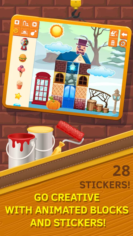 · a choice of many building blocks, backgrounds, landscape elements, stickers for decoration;