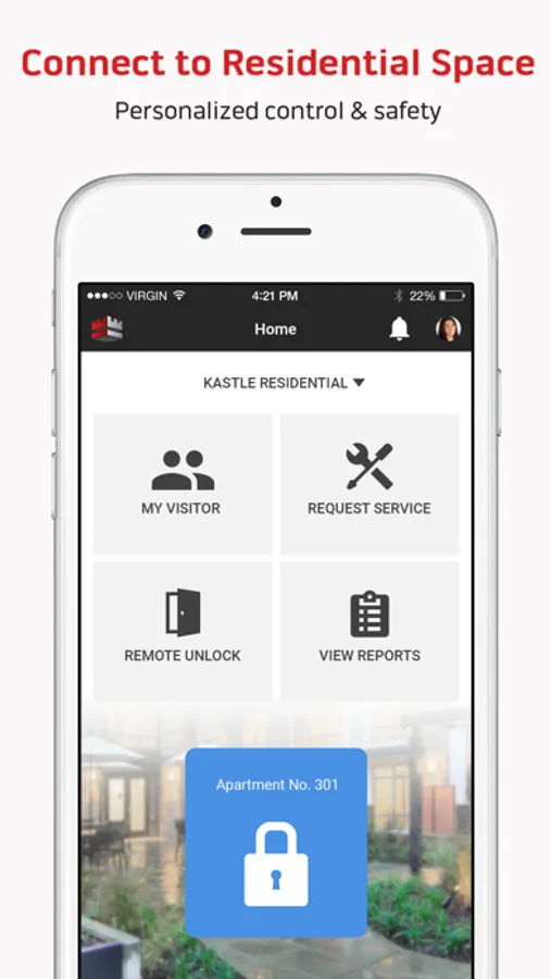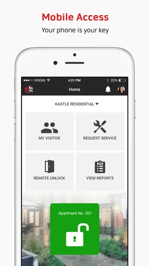KastleResident represents the latest advancement in resident amenity and engagement for multifamily communities. Built in harmony around the high frequency usage of a BLE mobile access control credential, cutting edge features like visitor registration and management, remote unlock, occupancy data, community notifications and maintenance service requests deliver new digital experiences for your residents in a single, powerful app.