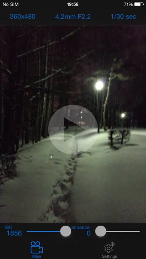 In case of iPhone X, the sensitivity can be increased up to ISO = 1760, shutter speed = 1/3 sec.