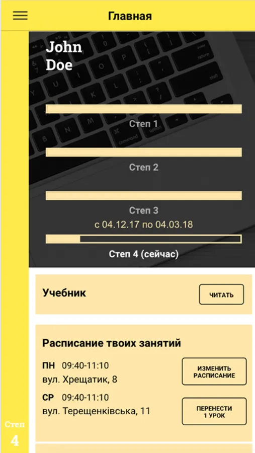 An application for students of Project 12 English School that helps you manage your learning process by adjusting the schedule, signing up for additional classes and one-to-one sessions with a teacher, monitoring your progress and a lot more.