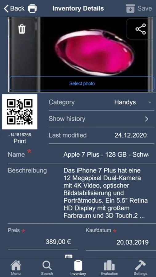 The Inventar-Manager is a mobile application in which you can easily and conveniently record and maintain the entire inventory of a company or a private household.