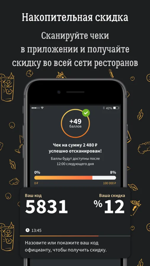 Только для пользователей мобильного приложения есть возможность получить скидку в ресторанах Chester Family по системе лояльности: для этого скачайте приложение и сканируйте QR-коды с чеков (все подробности предложения внутри).