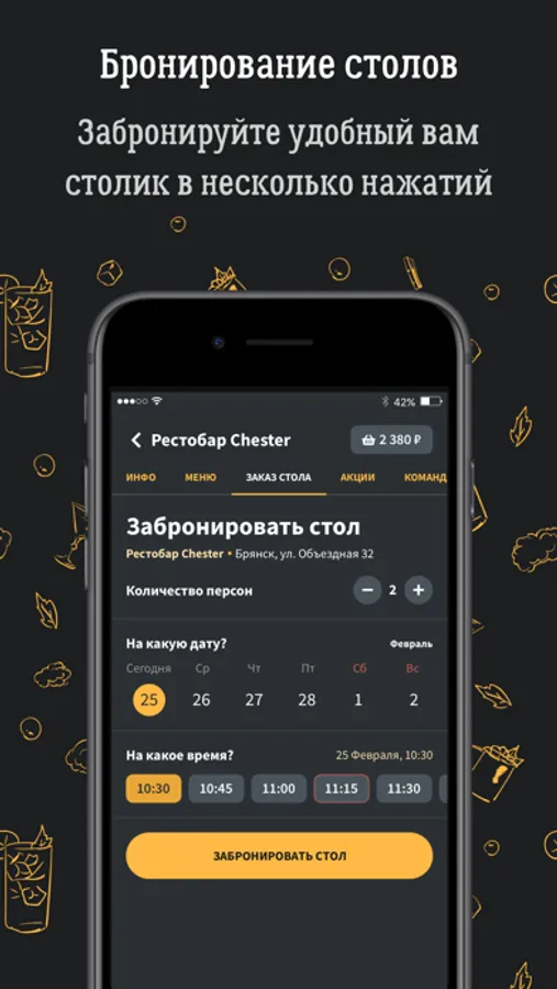 — бронирование столов